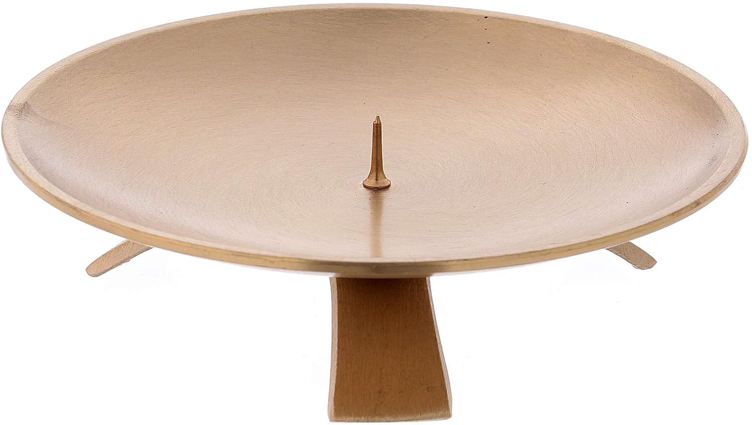Candle holder plate in matte gold plated brass spike d. 5.1 inches. Candle holder plate made in matte gold plated brass with small central spike to fix candles. Weight: 0.30 g - Article Size: Candle diameter: 13 cm - Article Materials: Brass - PRODUCT CODE: PC000270